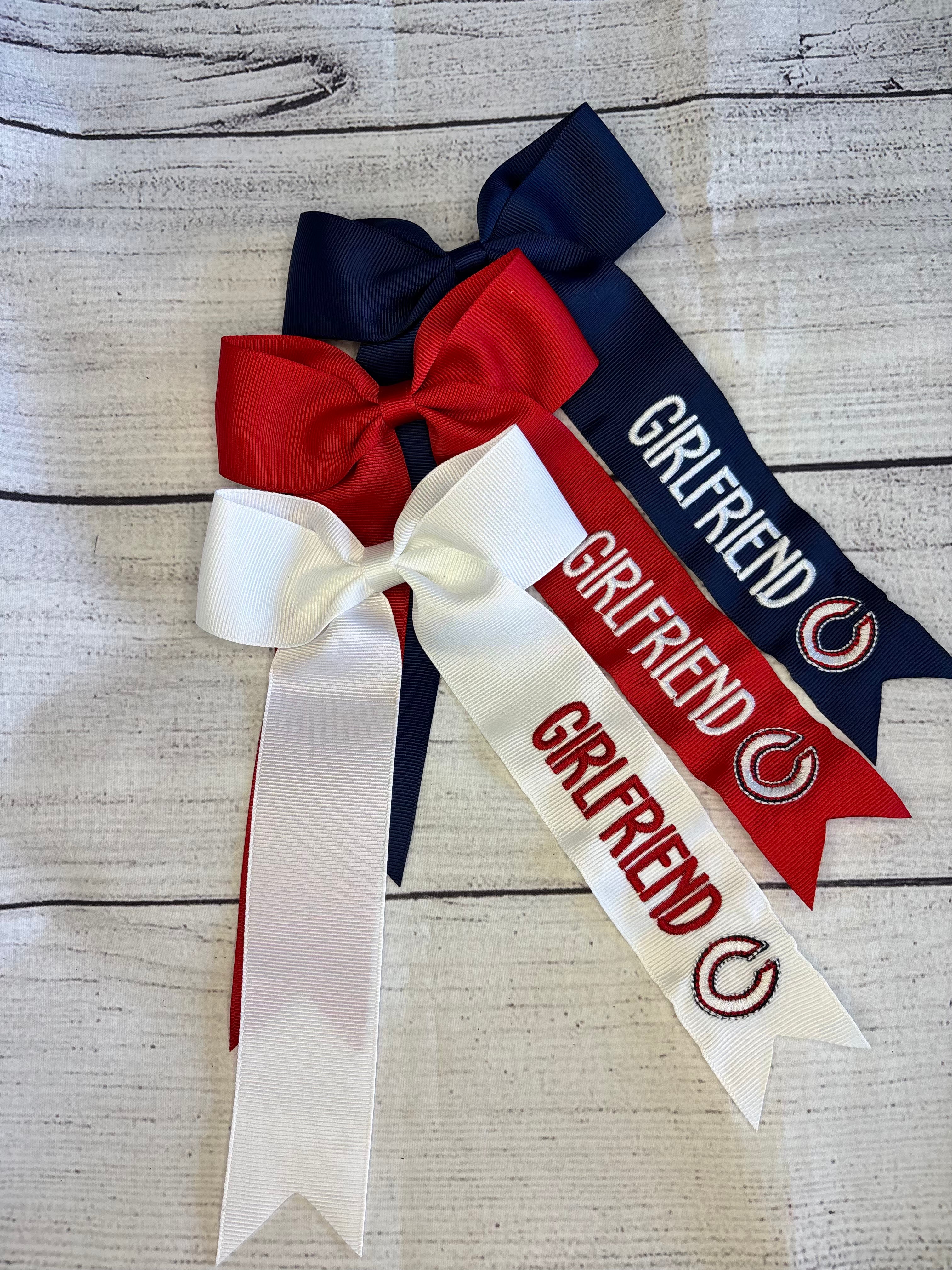 Make a statement with our custom embroidered streamer bow—designed to add personality, color, and polish to any look or event. Crafted from high-quality materials, each bow features flowing streamer tails and detailed embroidery.